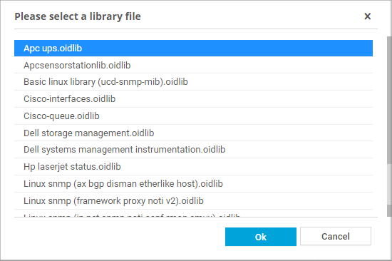 The library file names in the list indicate their purpose. Select a library file that is suitable for the target device (for example, choose an MIB file that you imported) and confirm via Ok.